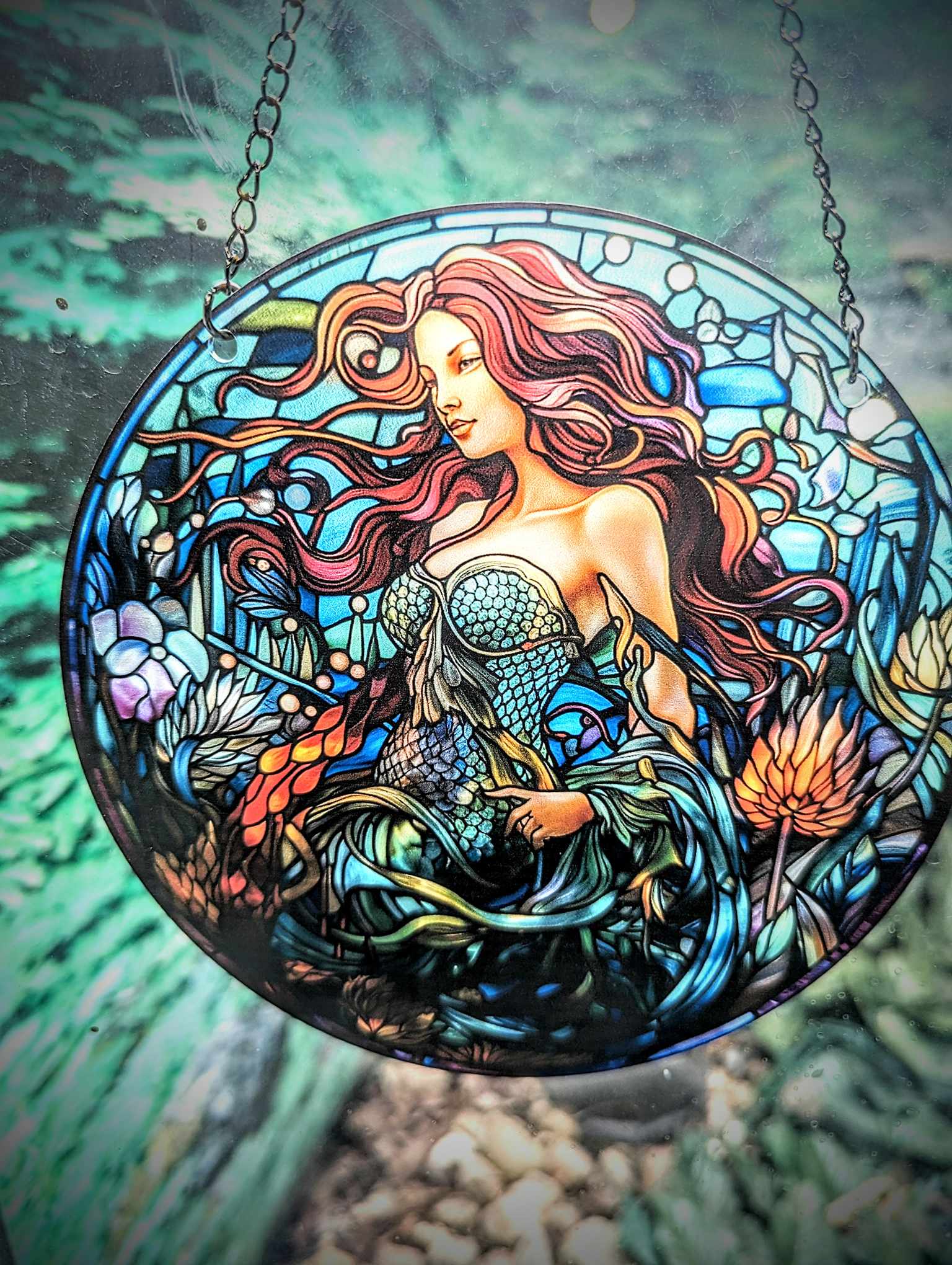 LOVELY RED-HEADED MERMAID IN BLUE SCALES IN HER SEA GARDEN