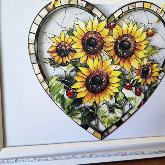 Bring radiant joy and warmth into your home with this handcrafted sunflower heart suncatcher, a stunning piece that captures the essence of sunlight and natureβs happiness.